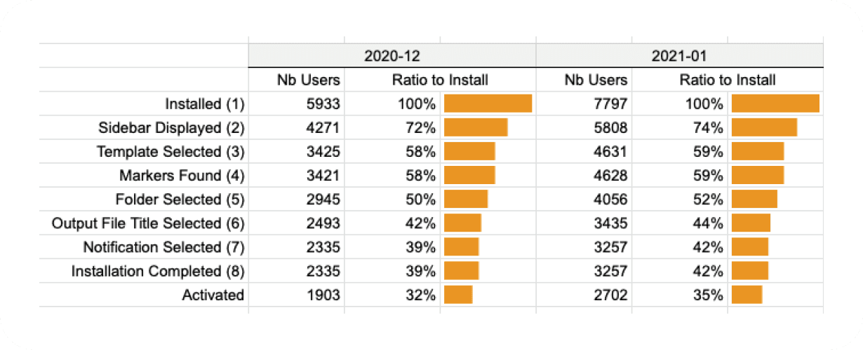 Of the hundreds of installations that happen every day, only 32% lead to an activation. HMW simplify the installation-activation workflow so users can start generating their first file?