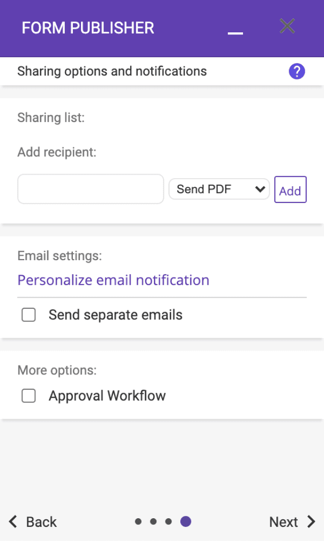 The first concept was linear and quick to complete, but it didn't feel as complete as it could have. User testing revealed that not all users want to create a form, and without a form, Form Publisher can't work. Historically, we have never made this clear in our design.